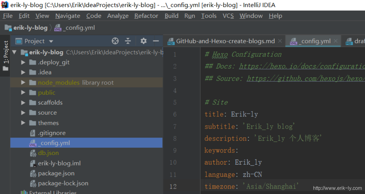 现在对博客进行一些简单的设置,打开设置文件_config.yml,然后依据自己情况进行设置