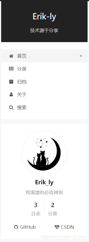 部署完成后,打开 https://erik-ly.github.io/ 查看效果,这个是和你自己的仓库名称一致的,网页效果为